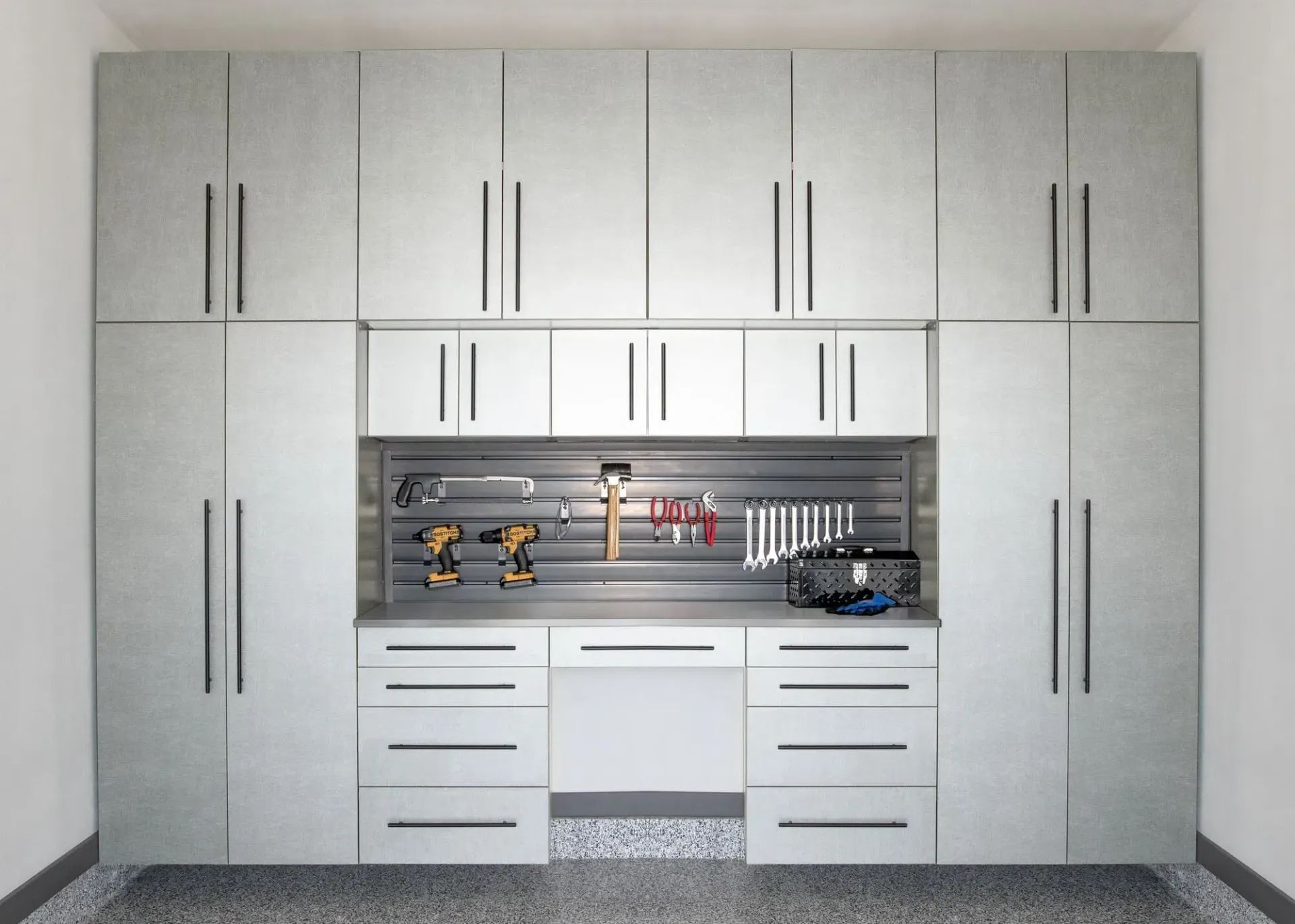 workbenches are available in a variety of colors and sizes with a limited lifetime warranty. The cabinets and workbenches are meant to outlast moisture, dirt, grime, and more. We’ll help you select the cabinet and workbench sizes, colors, and configurations to suit your tastes, needs, and garage space.